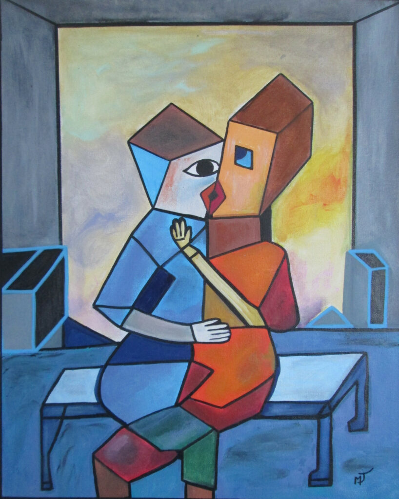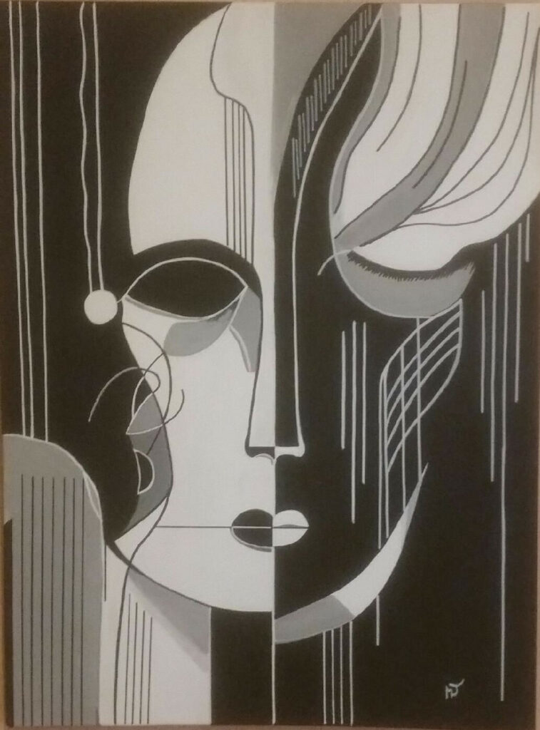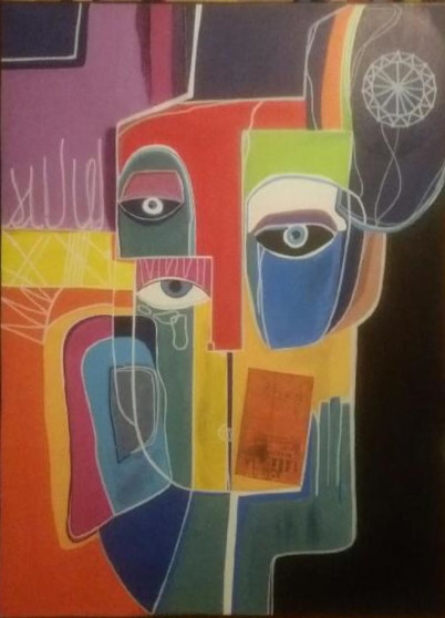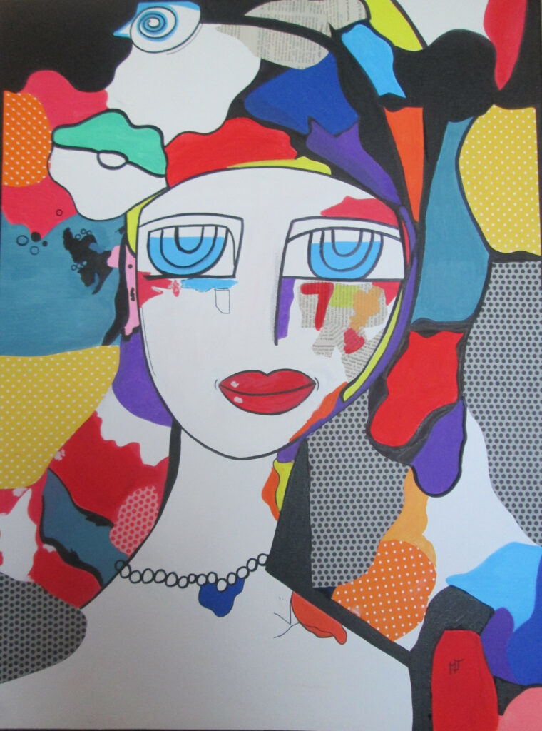 Moderne n°2 – collage, acrylique et craie – 40 X 50